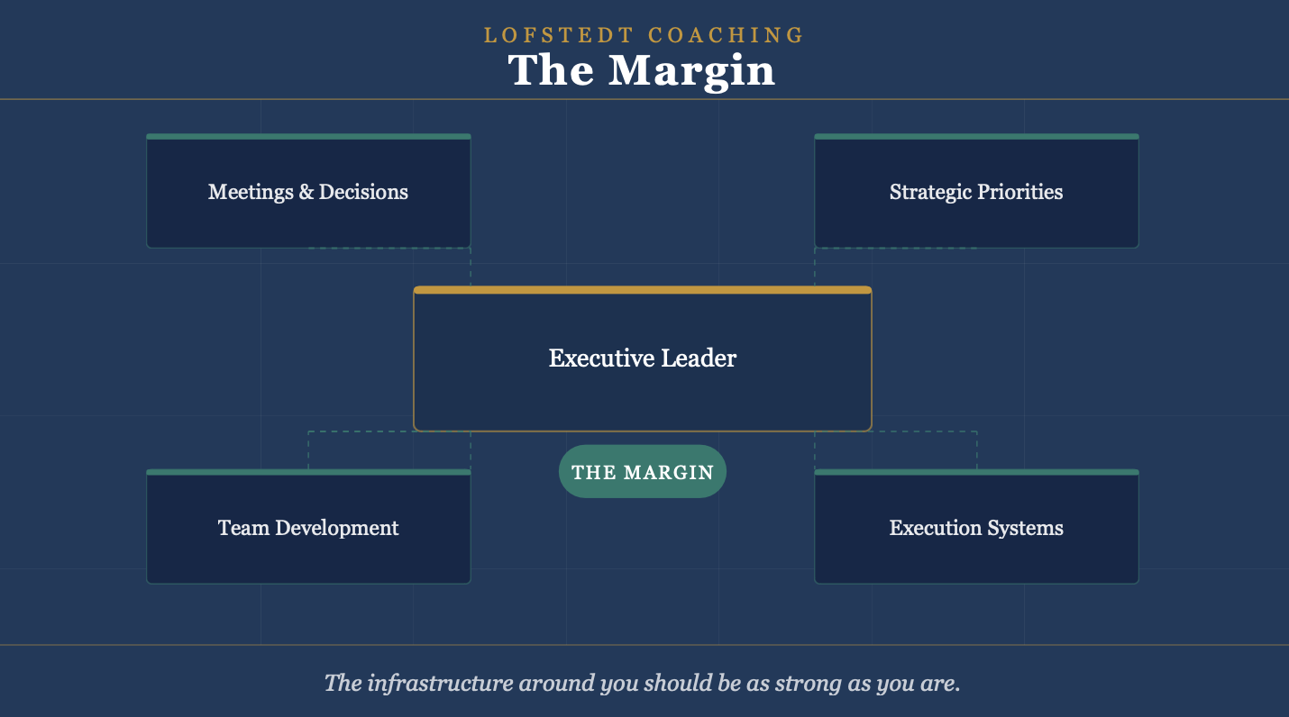 Your team is capable. Cross-functional work breaks down at the handoffs. The Margin builds the operational and strategic infrastructure your organization needs to move — and then steps back.